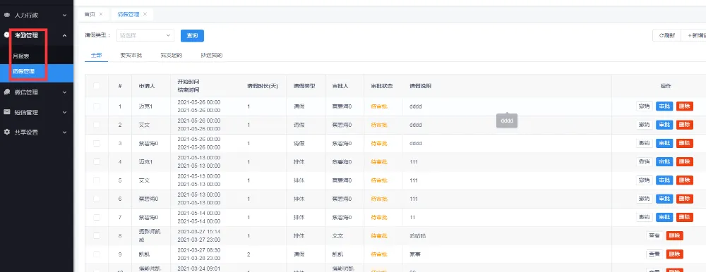 定位考勤后,财务或者人事人员可以在后台统一查看员工的考勤汇总情况和审批情况。