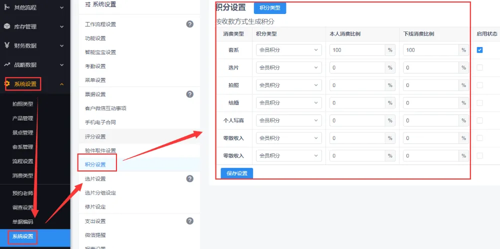 增加和完善积分设置,方便通过设置积分的模式增加客户的黏度;