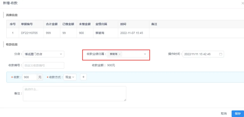 这个补款业绩的定义是:默认是按消费业绩归属人统计,不论是否选择其他收款业绩归属人;如果需要均分的话,可以在后台系统设置中启用设置。方便有些企业根据内部情况问题需要变动业绩统计的。