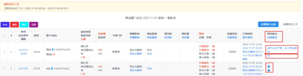 排空系统中的摄影表通常很多企业会增加一些备注信息方便员工查看客户的更多信息。因此如果需要修改备注的情况下,可以直接点击文字进行编辑。同时针对预设的备注和完成的备注各自分离,可以查询预设的和实际完成的备注情况。