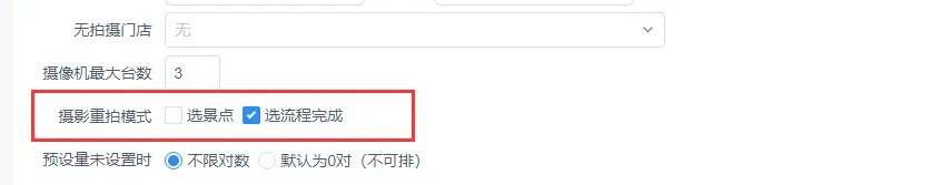 作用:如果客户重拍的话,可以根据您后台设置选择是按照景点来重拍,还是按照流程完成的来设置。之前系统都是按照景点的,现增加了流程完成的,无需景点即可重拍设置。