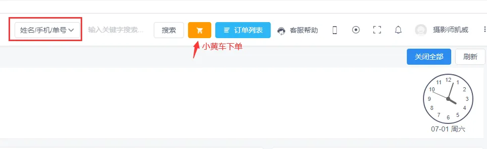 作用:增加搜索条件栏是为了精准查询,这样可以支持精准查询和模糊搜索;调整下单按钮,改成小黄车就是下单。