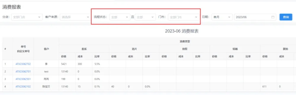 4财务报表中消费报表增加按流程状态与门市条件来搜索