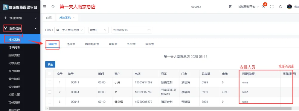 答:建议您摄化人员的工作安排和工作确认统一有调度或主管来负责,因为从博诚多来以来的经验分析,一旦员工自己确认工作的话,会出现漏确认,错确认等现象,导致摄控混乱业绩报表统计不清晰。因此建议有专人负责,专人做专事才能有效的把控流程。