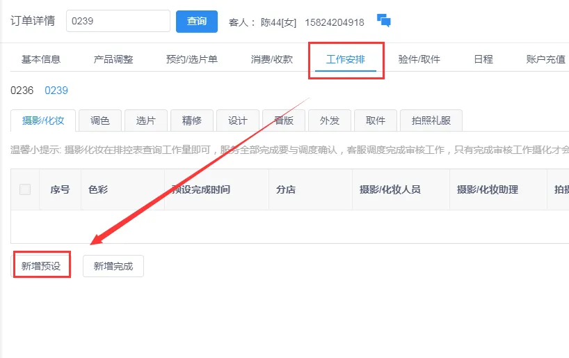 答:预设量控制可以设置为每天安排多少客户拍照等流程的设置,当您需要启用的可以在设置中设置,设置如图