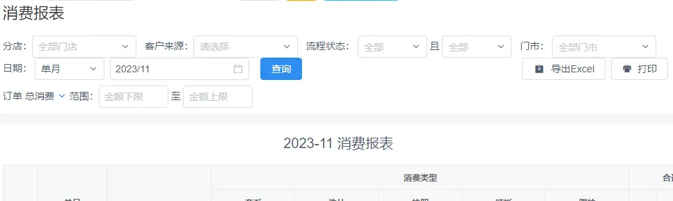 3.财务相关报表:客户消费报表增加导出和筛选功能