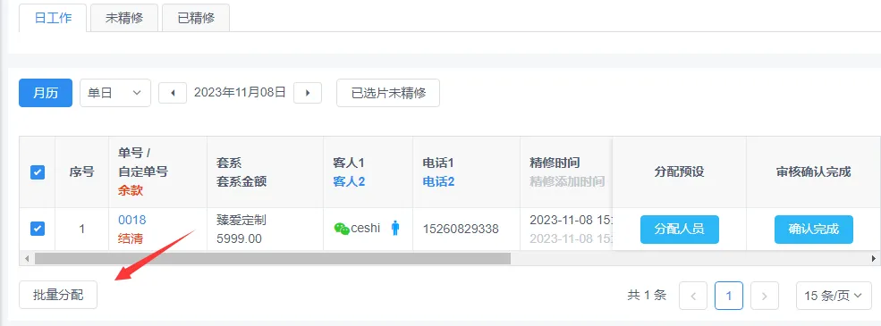 操作:左侧的【服务流程】中,相关的内部流程都在日工作中增加了批量分配安排。