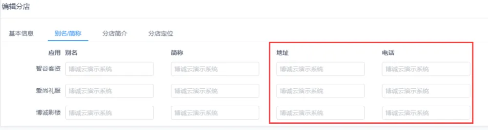 作用:企业可以依据自己软件应用信息设置不同的地址,比如您有管理系统和礼服系统,那么您可以区分不同的门店地址和电话。