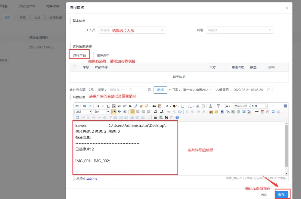 【影楼选片帮助】如何提交选片报表和选片消费