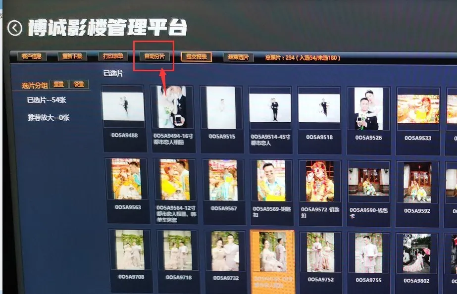 第四步:当您提交并打印选片单后,请您及时回到选片程序进行【自动分片】位置您可以选择适当的位置;