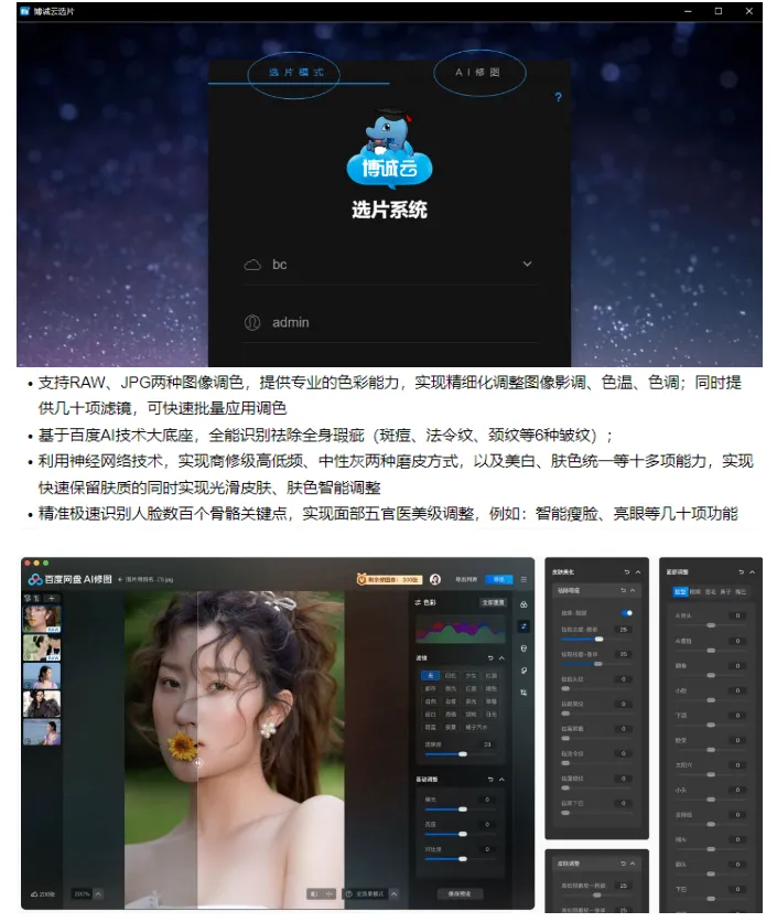 博诚云摄影ERP携手百度AI修图!旨在为人像企业提供更高效的修图效率与企业效应,为人像企业提供影楼管理系统与后期软件互通,加大了流程管理与影像处理间的便捷性,提升工作效率!博诚云致力于企业降本增效,此次合作将为企业带来更具性价比的修图程序,让选片师即可操作现场呈现修图效果!