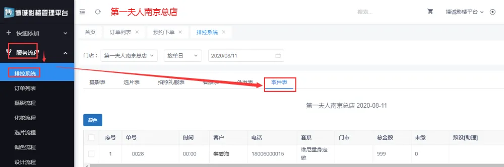 第一步:我们可以在左侧的【服务流程中】的【排空系统】中查询每天取件的客户信息。