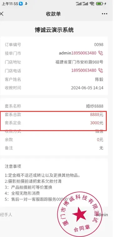 隐藏后单客户进入小程序或者扫码获取收款单时,则不显示套系或者本次消费单的金额。具体显示可以参考下图效果~