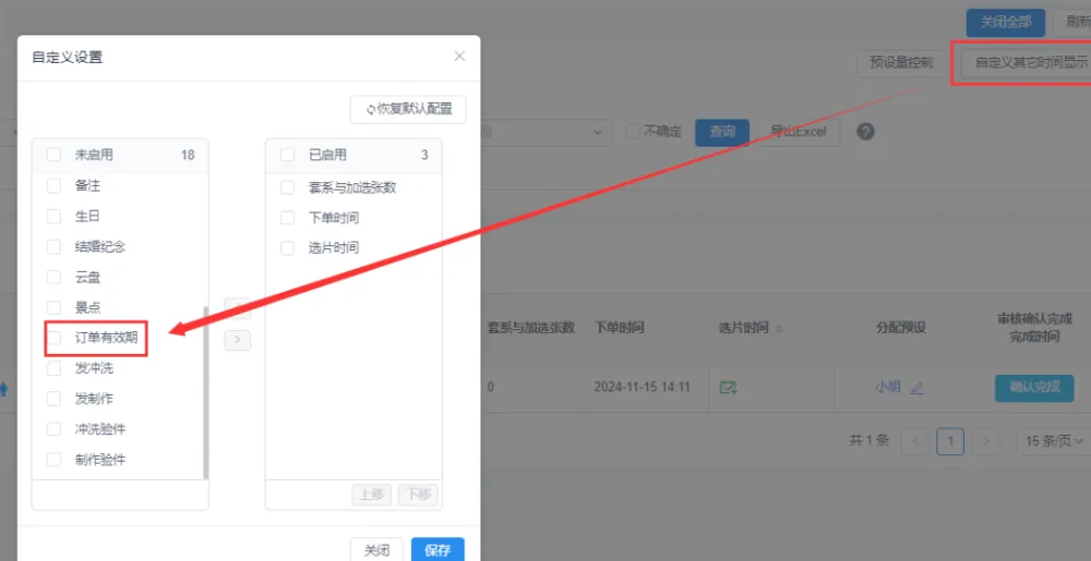 作用:产品管理中每个产品后面的图片按钮调整为点击就显示图片;在摄影流程未摄影/日工作中增加自定义选择订单有效期列(前提是开启订单有效期);多软件企业可选择按照软件应用来共享人员,方便区分不同系统中技术人员共享差异问题。