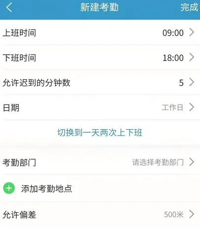 定位考勤可以针对不同的部门设置考勤的地点约束与时间约束。针对不同职位部门以及不同地方办公的员工都可以分开设置,更加方便。而且定位考勤支持设置允许考勤迟到分钟数,尽可能的从人性化角度给予小分钟数的偏差和考勤位置的偏差。