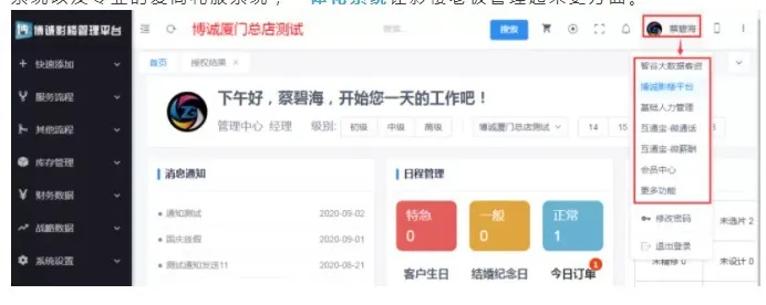 答:平台版的博诚目前可以打通我们旗下的智谷客资系统,实现一号多用(参考支付宝可同时登入阿里旗下任一平台),不但融合了客资,还融合了会员系统、人力系统、薪酬系统以及专业的爱尚礼服系统,一体化系统让影楼老板管理起来更方面。