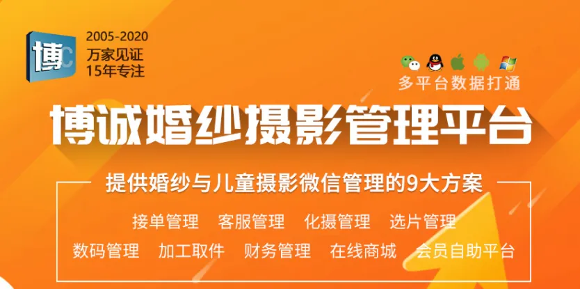 目前主流的影楼管理软件都以及是平台化的了,平台化不单单对管理来说更方便快捷,对员工的使用来说也更便捷。博诚软件基于互联网的变革与行业的进步再加大力度实现所有产品的平台化,实现产品一体化的生态互联系统。