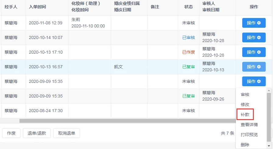 与安装版一样,零散收入同样支持补款等操作;同时订单的消费退款与退单也一并增加,出现退单退款时,可以及时操作并呈现财务报表准确