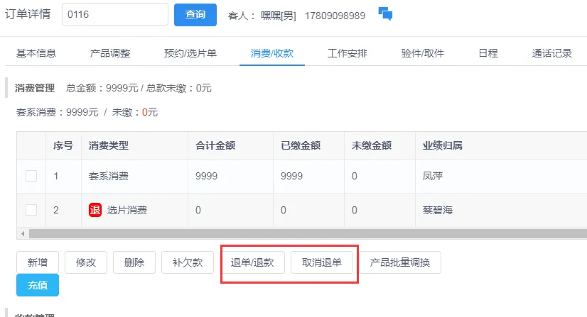 二、新增零散收入补款与消费退单退款