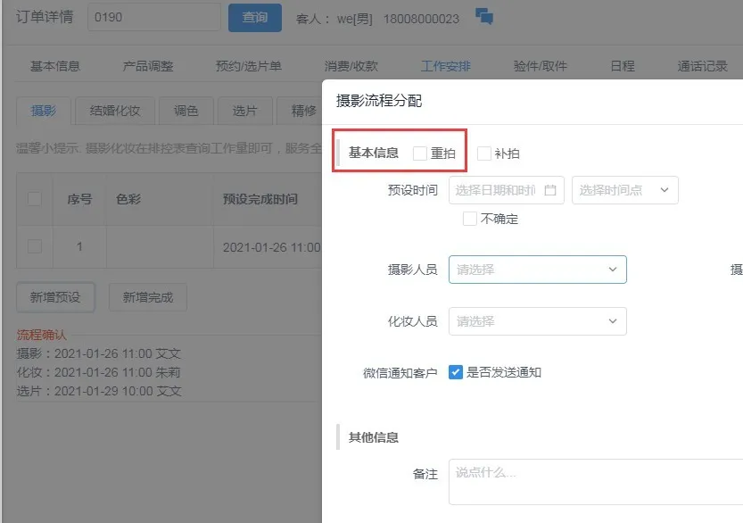 答:首先如果您需要给订单的客户设置重拍的话,需要客户要有景点才可以执行重拍选项的。通常拍照一定是有景点的,比如室内影棚还是室外景点;这样才可以重拍具体某项景点的。