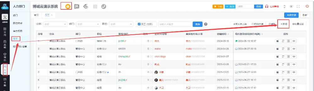 3人员添加(入职时间、员工姓名、艺名、手机)